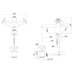 Consists of 1 x Angled bath shower mixer (Including the standard cradle, āSā adjuster, Claremont, Anglesey & Birkenhead divertor handle, hose, ceramic telephone handset , excluding tap heads, base and unions) (T9), 1 x Wall mounting unions (for Bath Shower Mixer & Bath Filler, 3/4) (T17-2) and 1 x Birkenhead tap handle (pair) (T3)