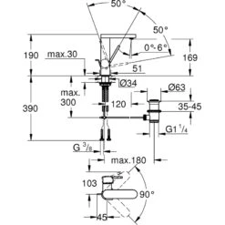 Eurosmart Cosmopolitan T Self-closing basin mixer with mixing device and adjustable temperature limiter
