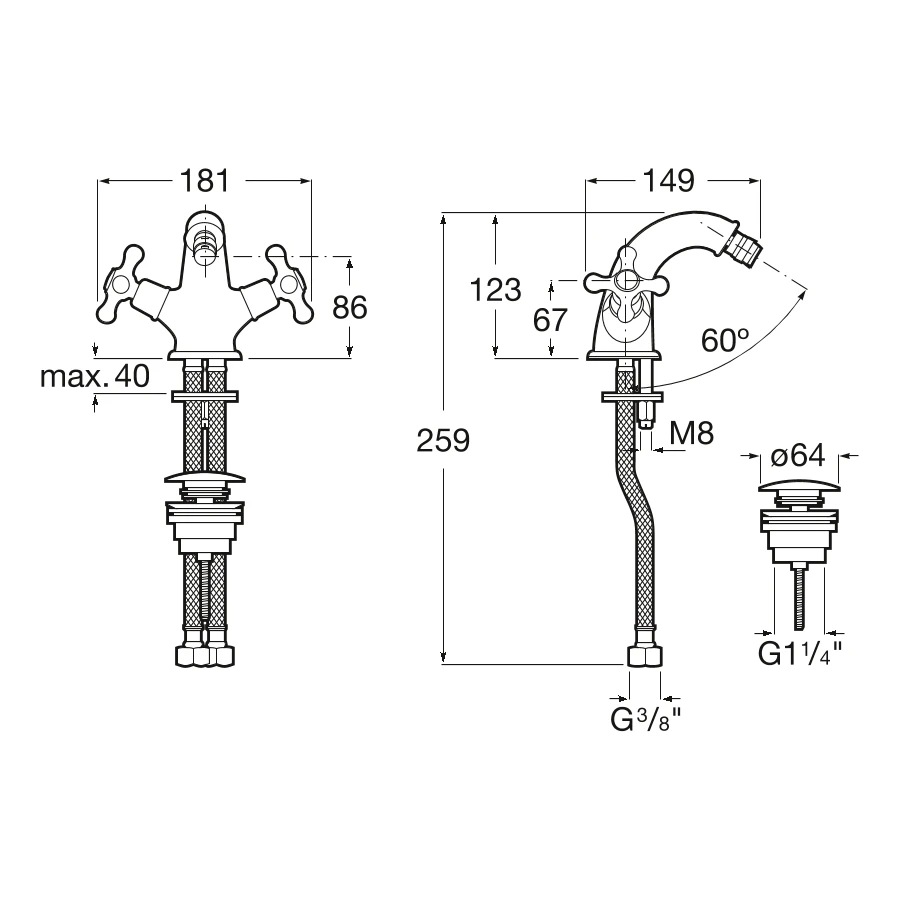 Carmen twin lever bidet mixer with waste